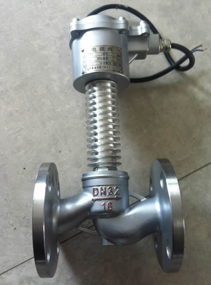 從結構原理上看,ZCZP 中溫電磁閥是由副閥和主閥兩大部件構成的先導式二次開閥的電磁閥,靠副閥的啟閉來控制主閥的通斷。根據斷電時所處開關狀態的不同,可分為常閉電磁閥和常開電磁閥。常閉電磁閥在斷電常位時,副閥口封閉,主閥呈斷路;當電訊號進入導閥線圈時,活動鐵芯受電磁力作用吸上打開副閥口,主閥閥杯內壓力迅速消失,介質壓力將主閥閥杯托上,開啟主閥口,工作介質即可流通;當電訊號消失時,活動鐵芯復位,封閉住副閥口,工作介質自平衡孔進入閥杯內,當壓力趨于平衡時,靠主閥彈簧、閥杯自重及介質壓力使閥杯下移,嚴密封住主閥口,閥又呈關閉狀態。常開電磁閥在斷電常位時,由彈簧作用,副閥口打開,主閥流通;當電訊號進入副閥線圈時,活動鐵芯受電磁作用吸下,副閥口封閉,工作介質經平衡孔進入閥杯內,當壓力趨于平衡時,靠主閥彈簧、閥杯自重及介質壓力使閥杯下移,嚴密封主閥口,閥門呈關閉狀態;當主閥斷電時,電磁力消失,副閥打開,主閥杯內壓力迅速消失,介質壓力將主閥閥杯托上,開啟主閥口,介質流通,閥呈開啟狀態。